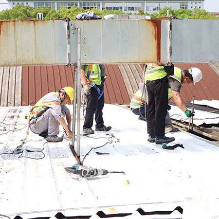 海美防水瓦以鋼板為基板,表面貼覆具有防水防腐功能的TPO/PVC卷材(熱塑性聚烯烴類防水卷材),是海美金屬推出的新一代防水防腐屋面建筑材料。海美防水瓦主要特點就是在各類環(huán)境下不易生銹不易漏水,使用熱風焊接進行相連,覆蓋全部裸露的縫隙,在使用過程中可以達到蓄水不滲透的效果,防水效果好,同時還有較好的抗風揭性能和耐老化性能,為鋼結(jié)構(gòu)建筑屋面提供了長久的防護。